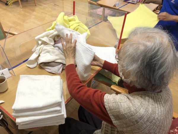 「四つ折りにしてからクルクル巻くんで良いのよね?」