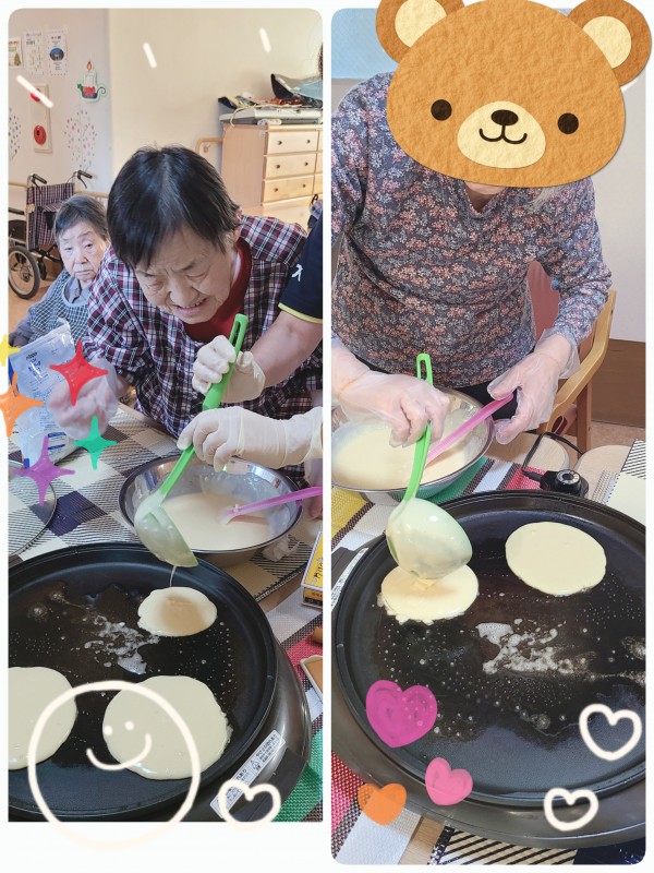 グループホームみんなの家 4階ホットケーキ作り