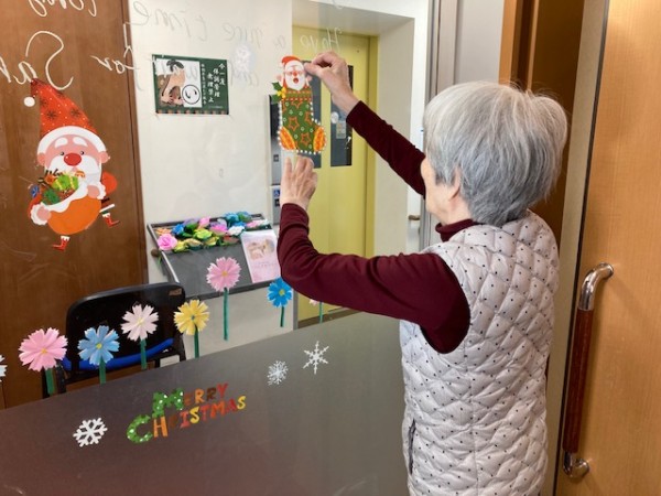 ガラス扉に皆さんで飾り付けを行いました。