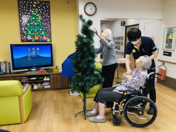 早速、皆でツリーの飾りつけを行いました。