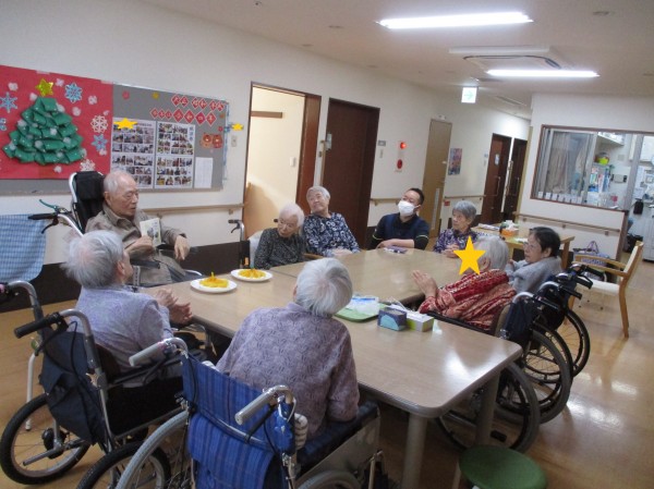 12月16日、認知症対応型グループホームみんなの家・蕨2の1階フロアでは9月から3ヶ月ぶりのお誕生日会が行われていました。