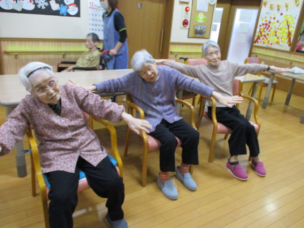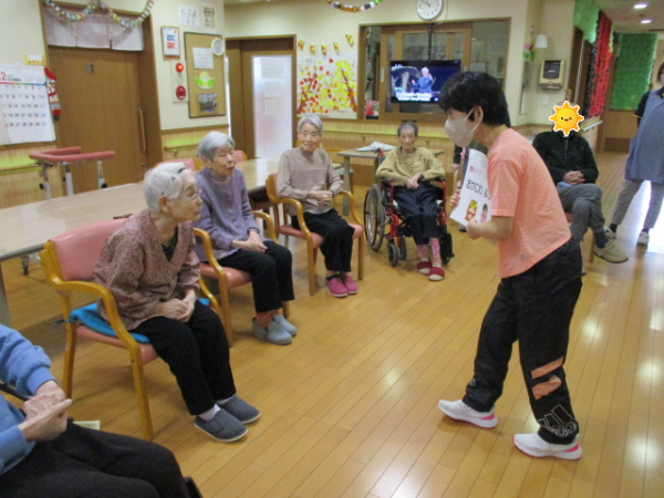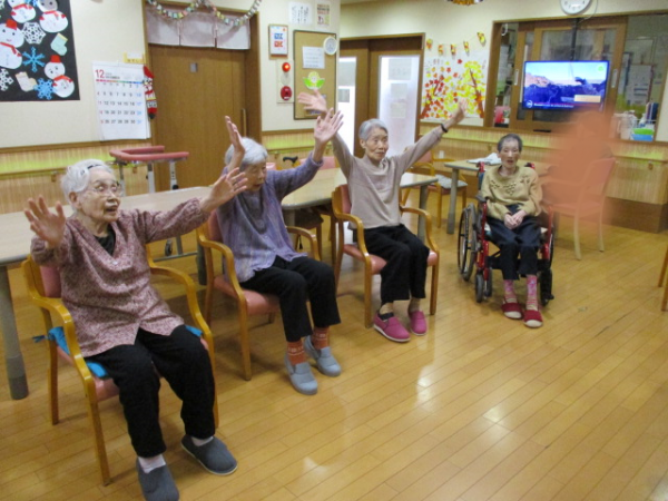 ホームでは訪問レク「いきいきリズム体操」がありました(^o^)丿