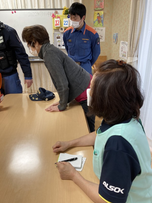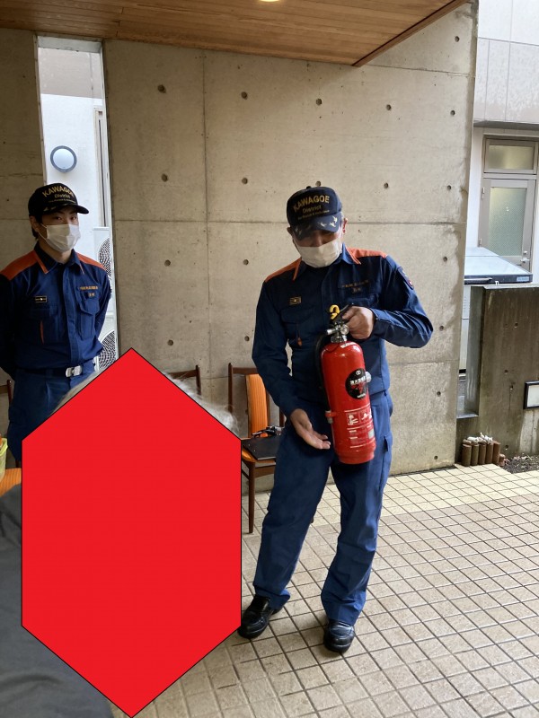 みんなの家・川越新宿では、川越中央消防署から署員さんにお越し頂き、雨降りの中消防訓練を実施致しました。