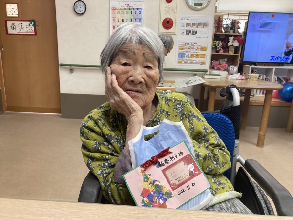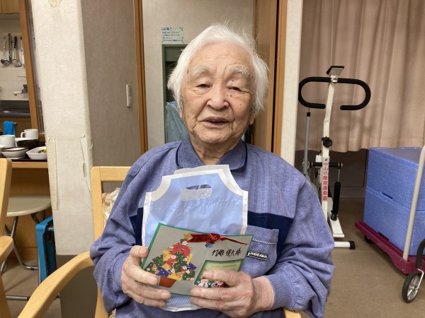 そしてこちらはプレゼントをお渡しした際の写真です。一部の利用者様のお写真を抜粋させていただきます。