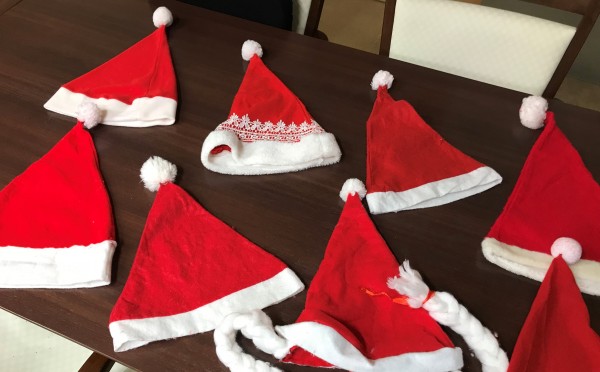 皆さんにかぶっていただくサンタ帽の準備はOK!