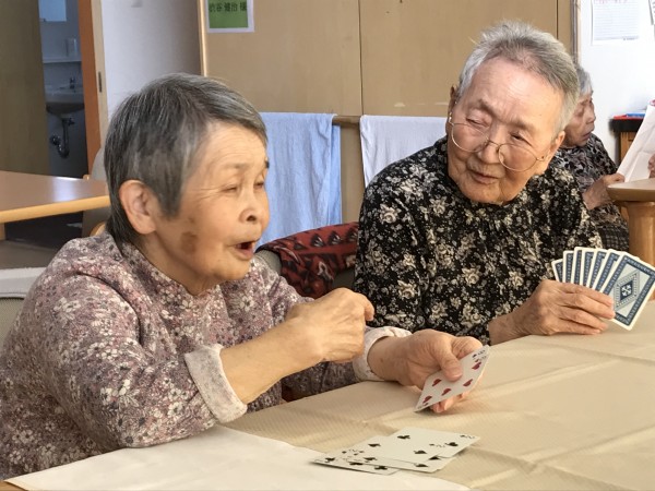 ご利用者様が集まってカードゲームに興じていました。