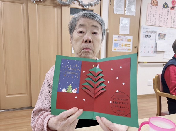 最後に、クリスマスカードをケアスタッフに見せて下さりました♪
