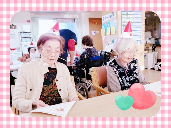 みなさん職員さんが作った歌詞カードを見ながら歌っています♪