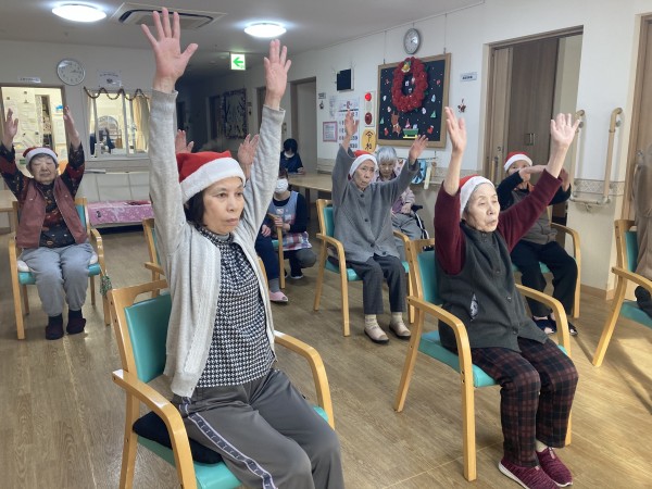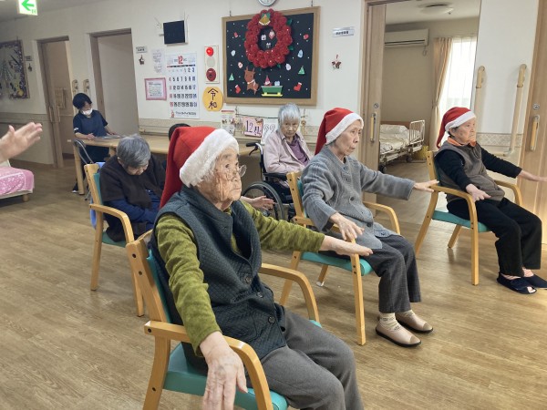クリスマスの音楽に合わせて体を動かされ、いつもお元気な皆さまの様子です。