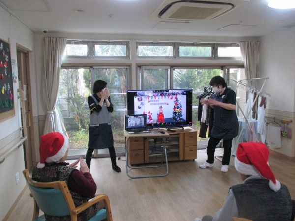 1階フロアのご利用者様もリモートでいきいきリズム体操に参加されました。