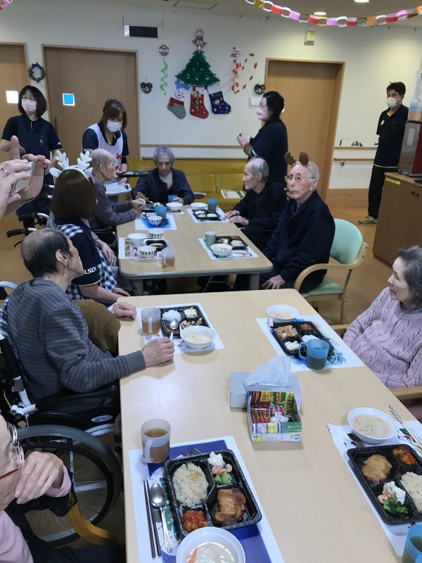 クリスマス会の昼食の様子になります。