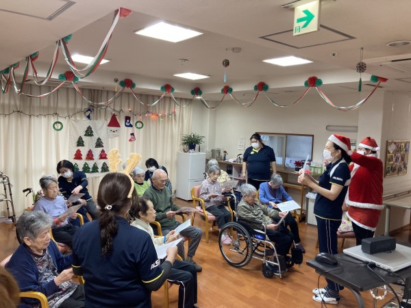 職員・利用者様とクリスマスらしく歌を合唱!!