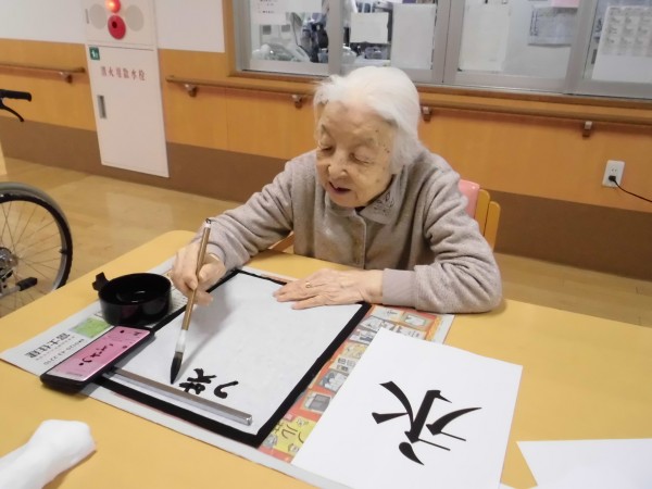 本日は年明け1回目のレクリエーションとして書き初めを行いましたので、