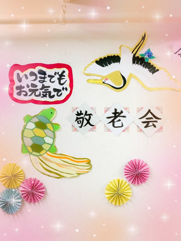 9月の壁紙で作った敬老の日の鶴と亀を