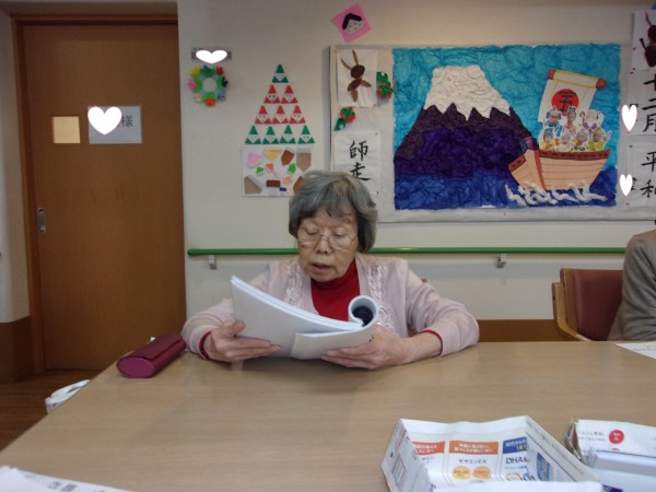 皆さんで「ジングルベル、赤鼻のトナカイ、あわてんぼうのサンタクロース」等を合唱したり、