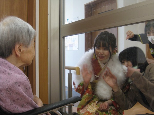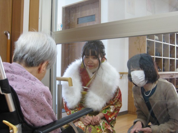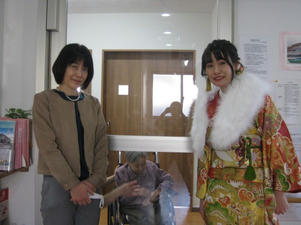お孫様が成人されて晴れ着姿を見せに来られてました!(^^)!