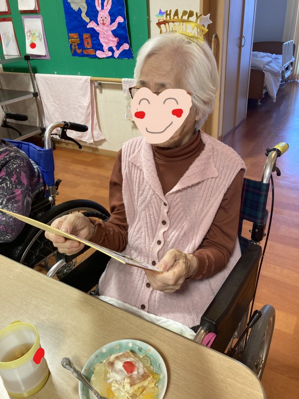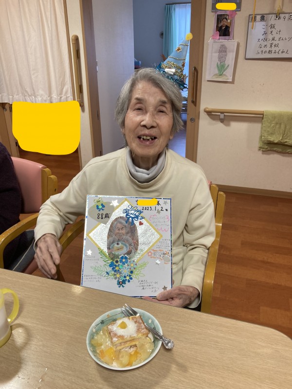 ささやかですが、ハッピーバースデーの歌を歌い ケーキでお祝いをしました。