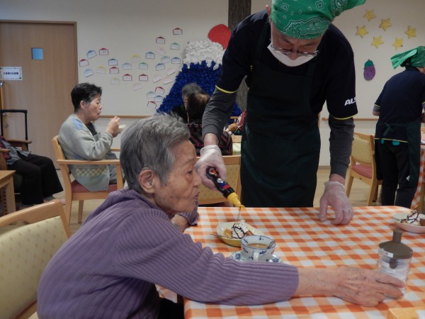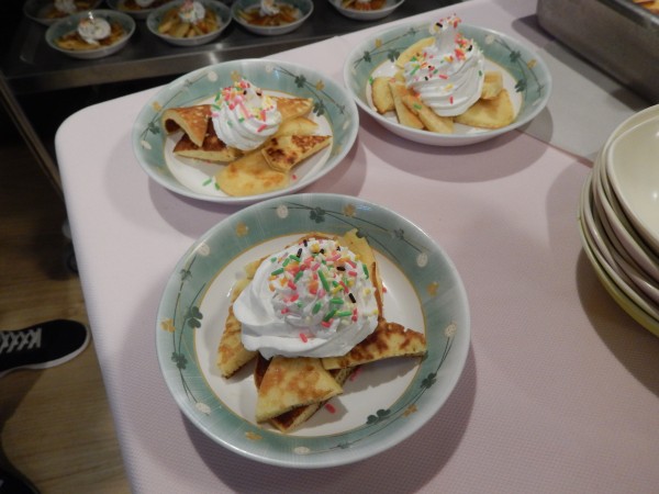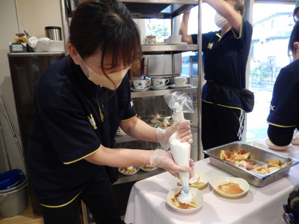 午前中焼き上げた“パンケーキ”を当施設のパティシエ達が、綺麗に可愛くデコレーションしてくれます(^^♪