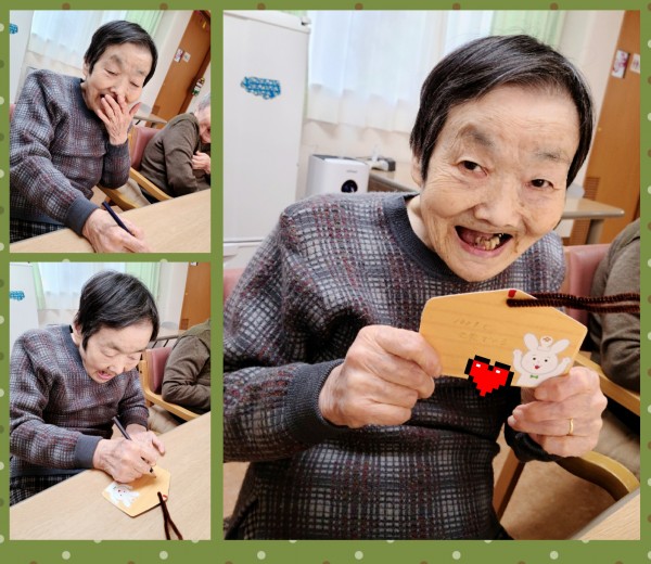 グループホームみんなの家大宮三橋 皆さん、どんな願い事をしたのかな?~2階 月レク絵馬作り編~