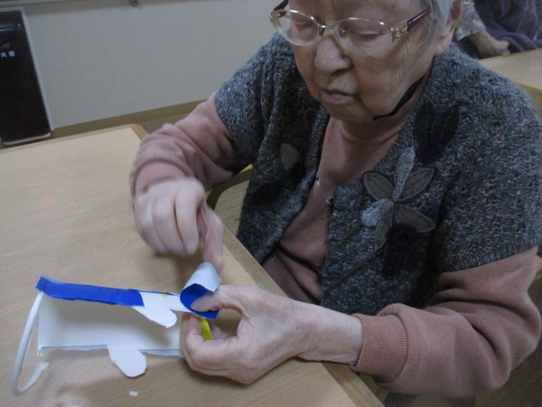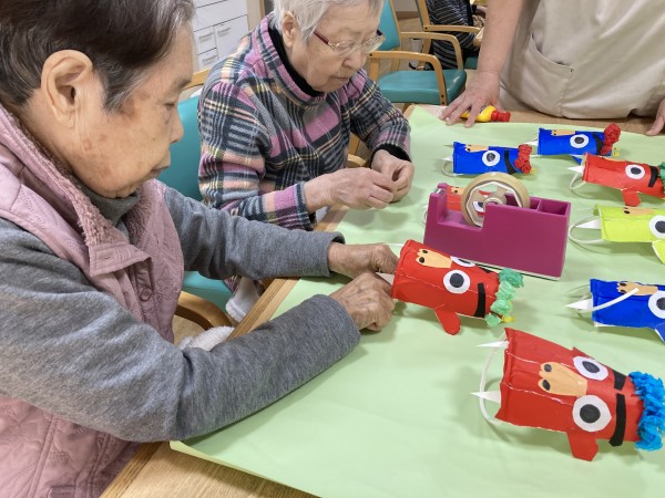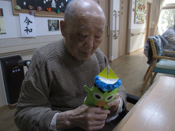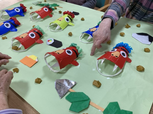 節分にあわせて鬼の顔を作り、飾りを作っています。