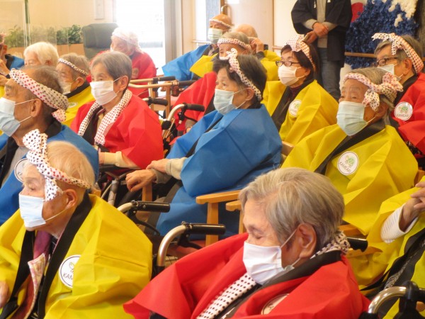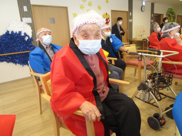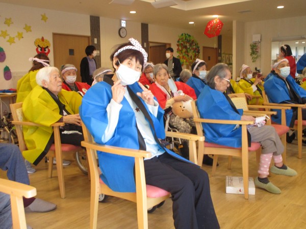 ご利用者の皆さま、スタッフ一同、みんなでお揃いのハッピ&ハチマキで集合(*^^)v