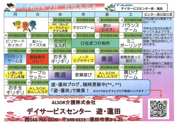 デイサービスセンター遊・蓮田☎:048-765-5500