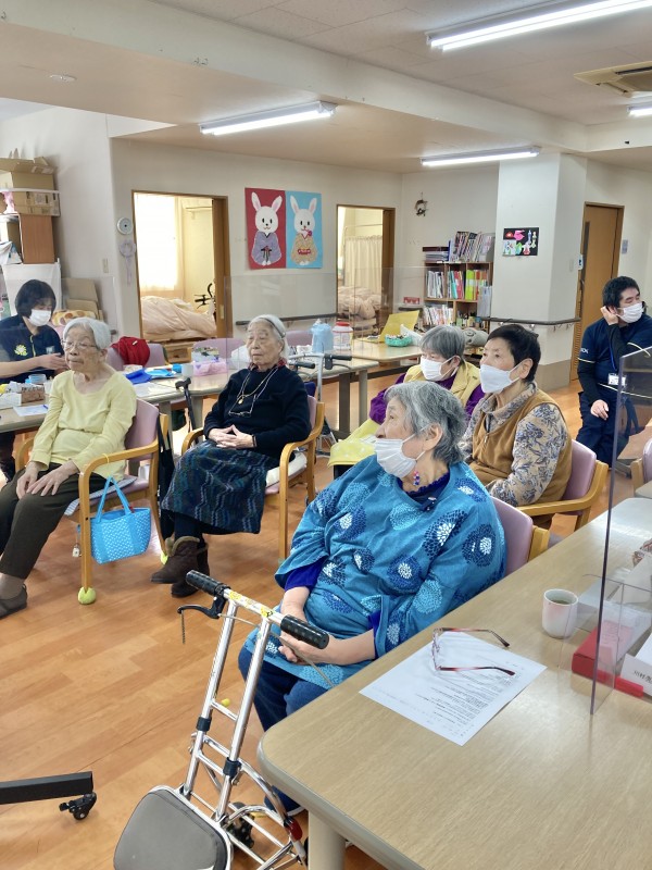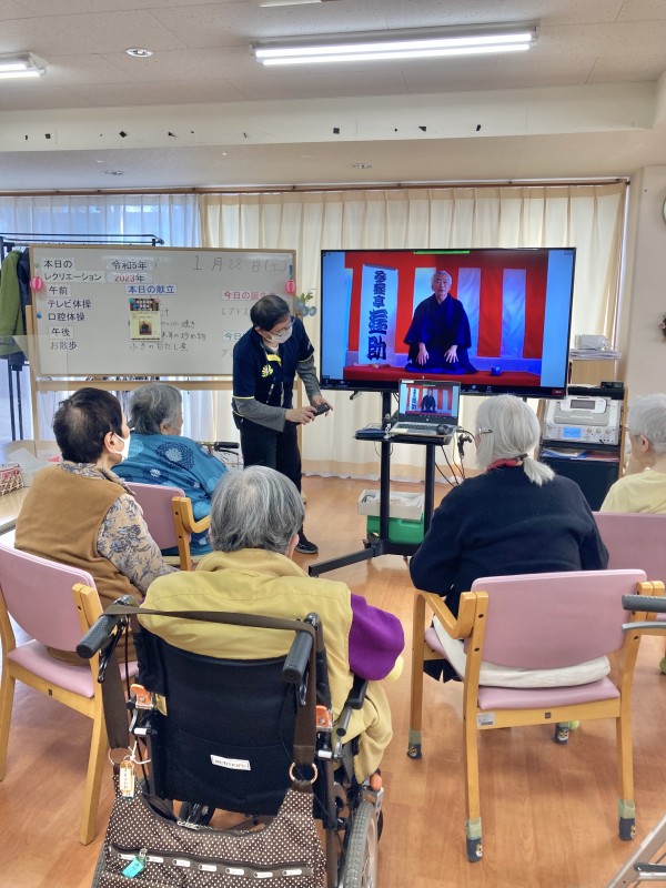 皆さん、テレビの落語に夢中でした。いつも違って、ゆっくりした時間が流れていました!