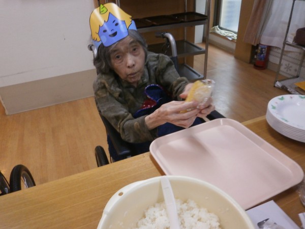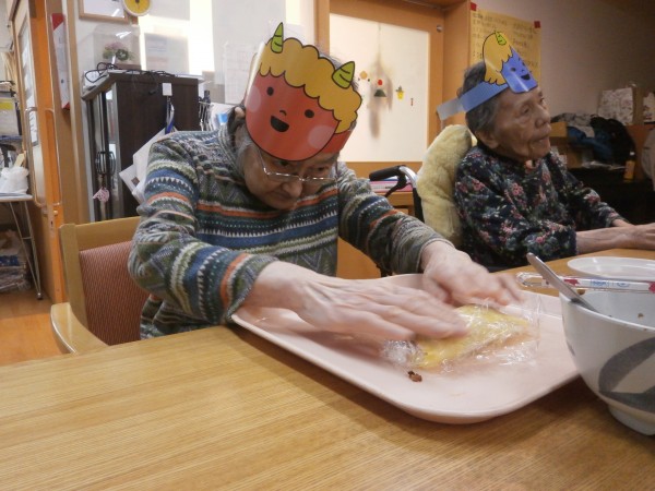2/3今日は節分。恵方巻を巻いて昼食に。午後は豆まきをしました。②