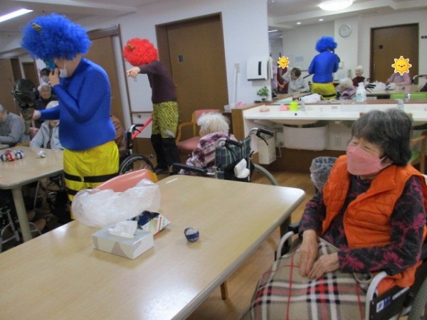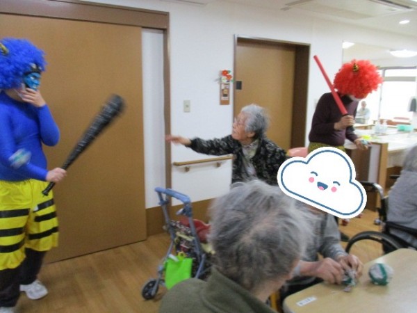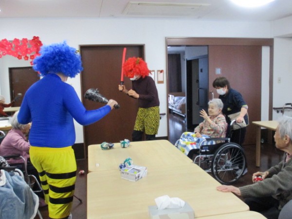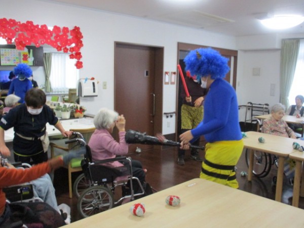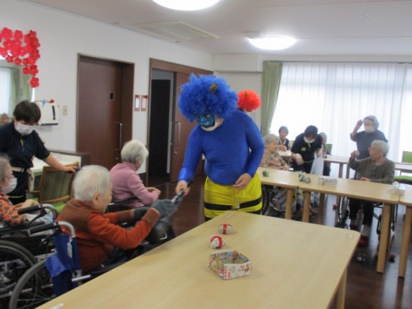 2月3日、内野本郷の施設では各階で【豆まき】を行いました(*^^*)