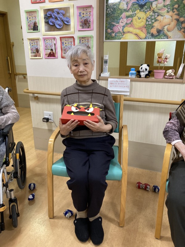 ゲーム感覚の豆まきが終わったあとは皆さんで豆を食べました。