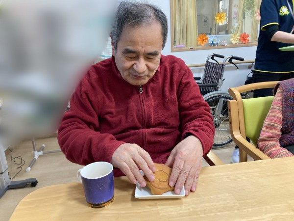 本日のお菓子は、ご入居者様のご家族様が差し入れに持って来てくださったどら焼きでした(^_-)-☆