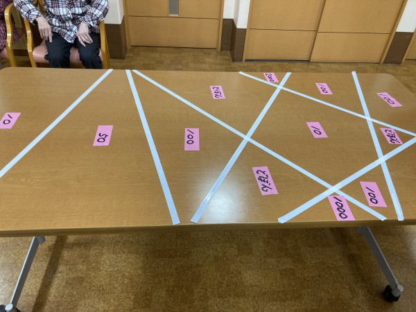 テーブルの上にうまく投げ入れ、得点を競い合うゲームです。