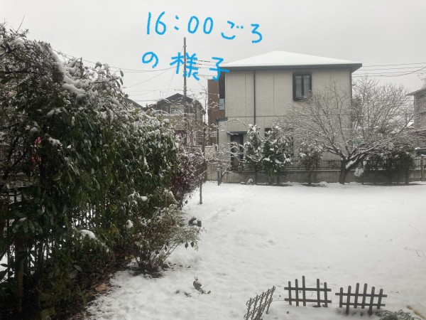 お昼ごろの雪は、芝生が少し見えなくなってきた程度でしたが、