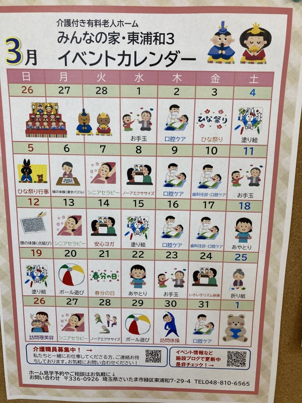 みんなの家・東浦和3~3月のイベントカレンダー~