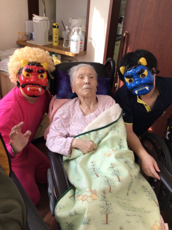 普通の豆を使用し、ベランダで豆まきを楽しまれました(^^♪