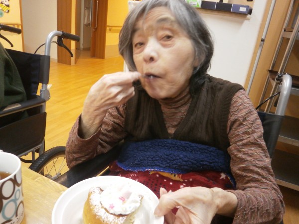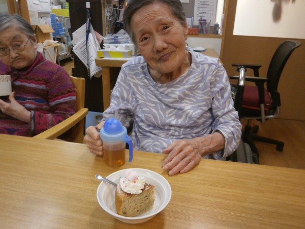 3. 2/14 今日はバレンタインデー。なぁに、バレンタインって?おやつにバナナケーキを食べました。ホイップにハートのマシュマロを乗せて。①