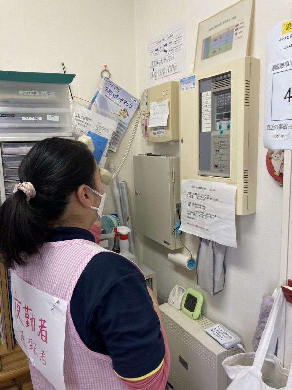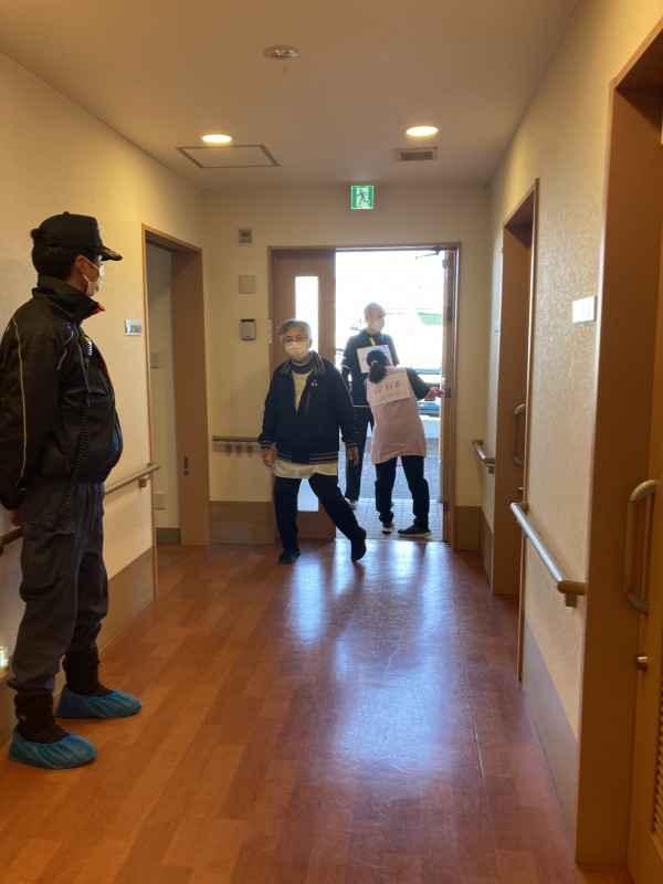 夜間帯は対応スタッフが少ない為、こうして避難訓練を定期的に行い
