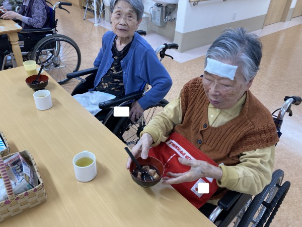 遅くなりましたが、先日おやつレク「おしるこ」を行ないました(^^♪