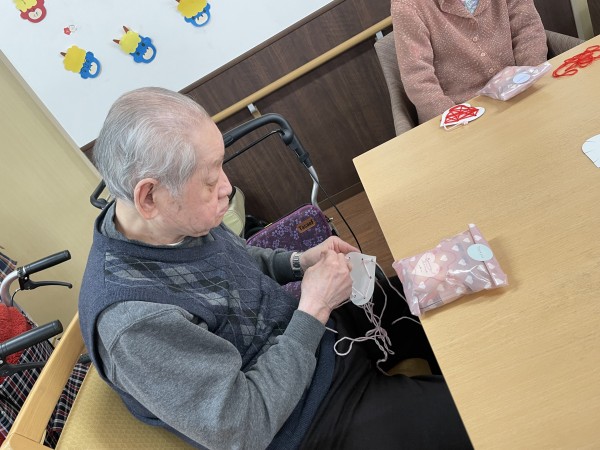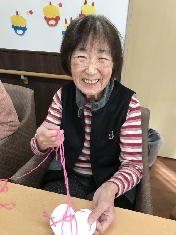厚紙と毛糸を使った、ハートの飾りの制作と