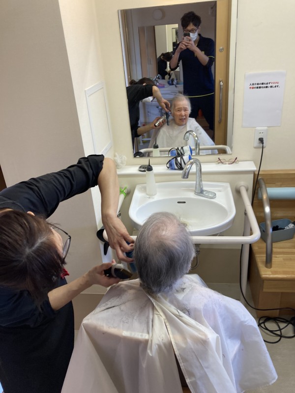 皆さんの散髪に理容師さんが来てくださいました。