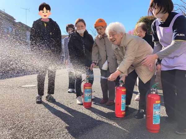 と、スタッフ全員がしっかり消火器の使い方を実践したあと、見学していたご利用者様たちが