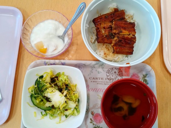 ここのうなぎは、身が厚すぎなくて、小骨も無いので皆様食べやすかったかと思います♪職員の「山椒はおかけしますか?」の声かけに、「大好きだからいっぱいかけて下さい!」「かけて下さい!」とはっきり答えられる方が多く、皆様の鰻好きが垣間見れました場面でした♪とても喜んでくださり嬉しく思います!次の食事レクが楽しみです♪