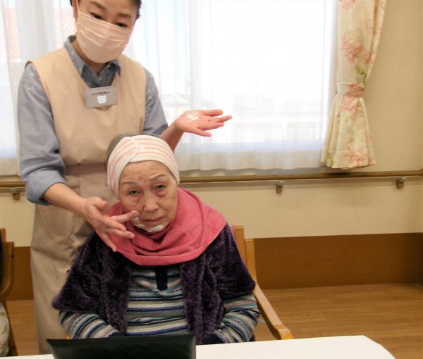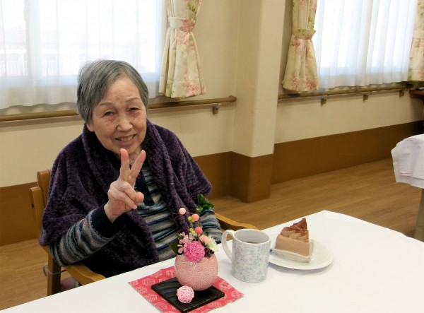 お昼ご飯のお寿司を食べ終わった後、お誕生日会当日にシニアセラピーさんが♪