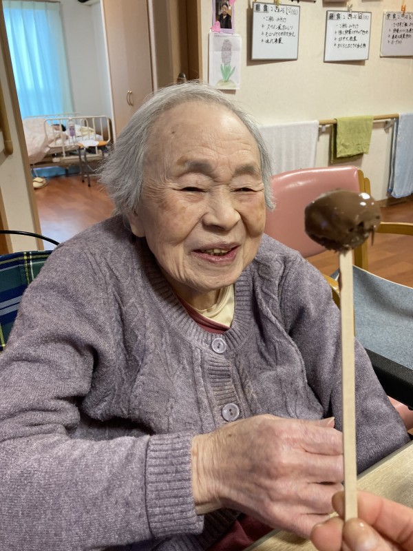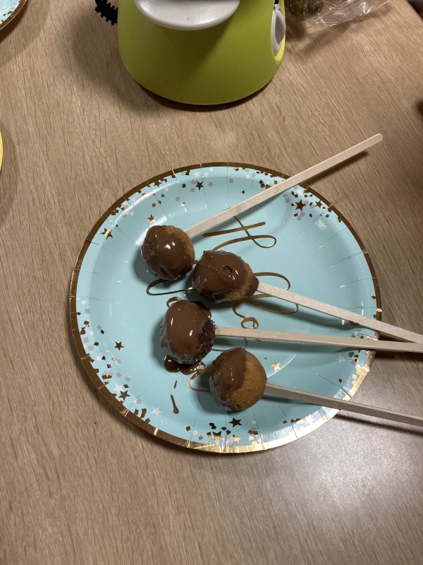 I様が上手にドーナツにチョコをつけてくれてます。が・・・