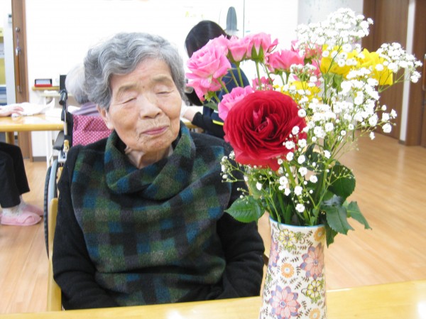 こんにちは! グループホームみんなの家・あきがせの介護ブログです! よろしくお願いいたします。 今日は長男様のお嫁様が来られ毎月1回のお花のプレゼントをお持ちになられました。その時のご様子をお知らせいたします!!