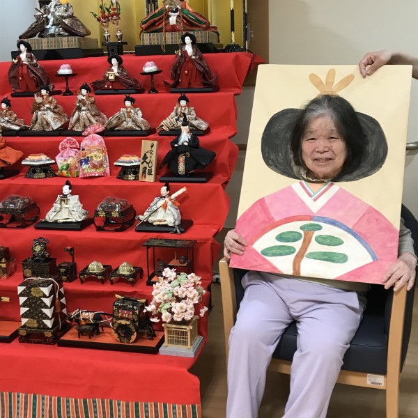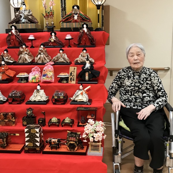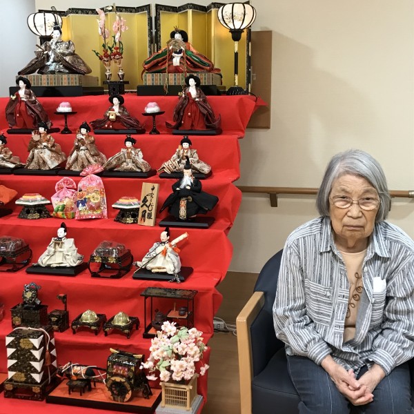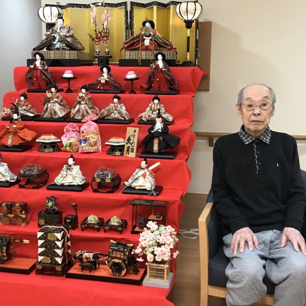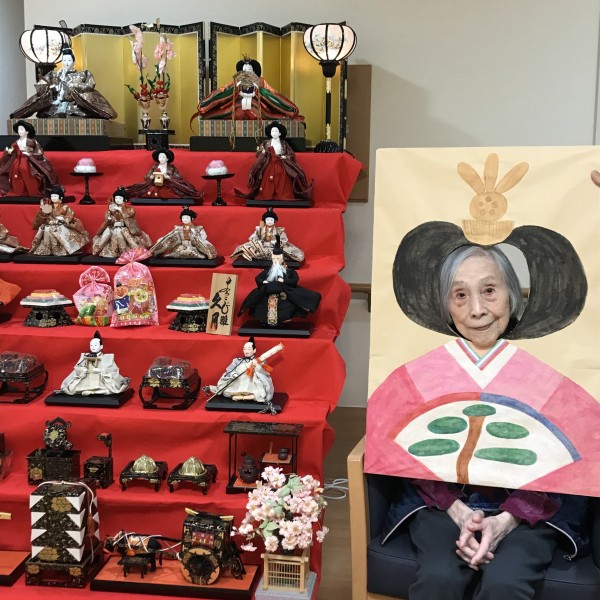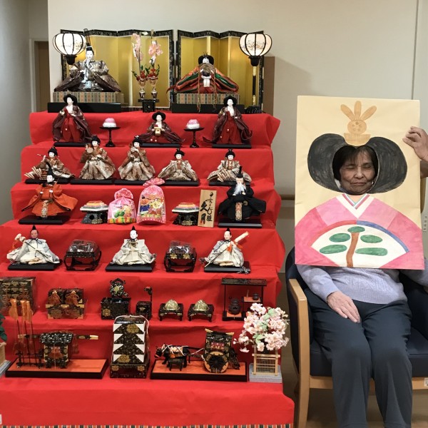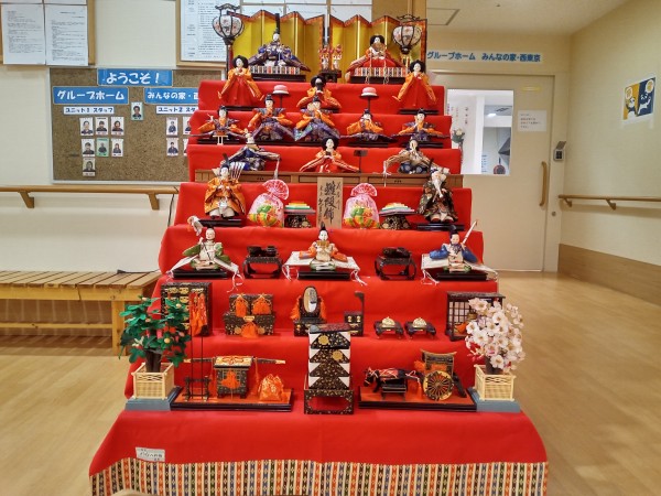 3月3日はひなまつりでしたね!ホームでは、去年と同様エレベーターホールにひな壇を2つ飾りました!写真の1枚目と2枚目からのひな壇が異なります。