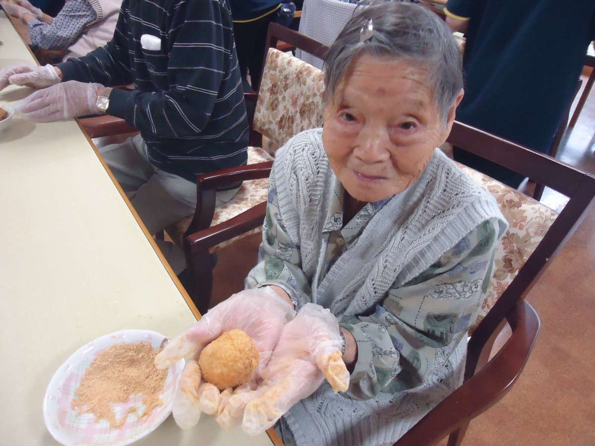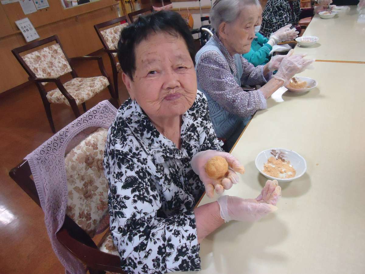 きなこをまぶしておいしそうなおはぎが出来上がりました♪