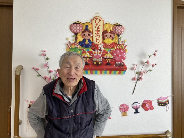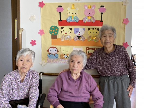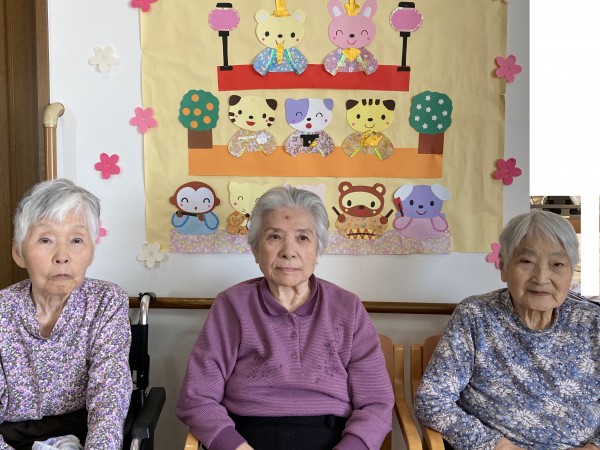3月壁飾りひな祭りの前で写真撮影を行いました。