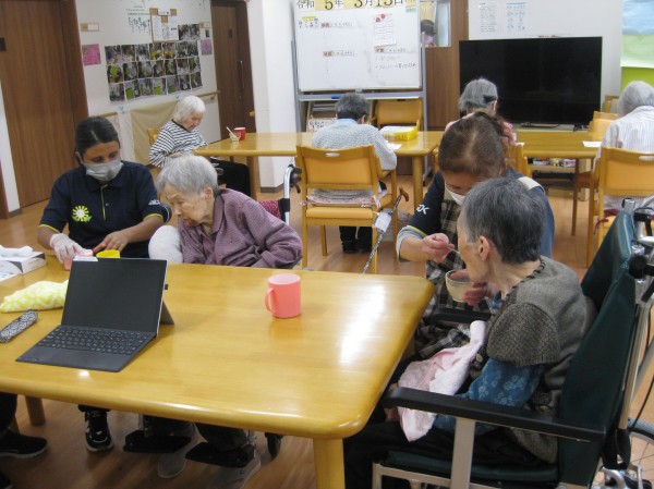 こんにちは! グループホームみんなの家・あきがせの介護ブログです! よろしくお願いいたします。 今日は手作りみかんゼリーを作り召し上がられている様子をお知らせいたします!!