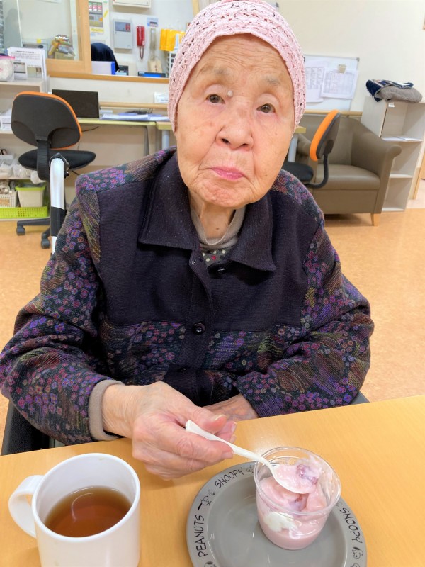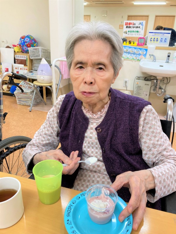 先日、おやつにいちごプリンを召し上がっていただきました(´ー`)
